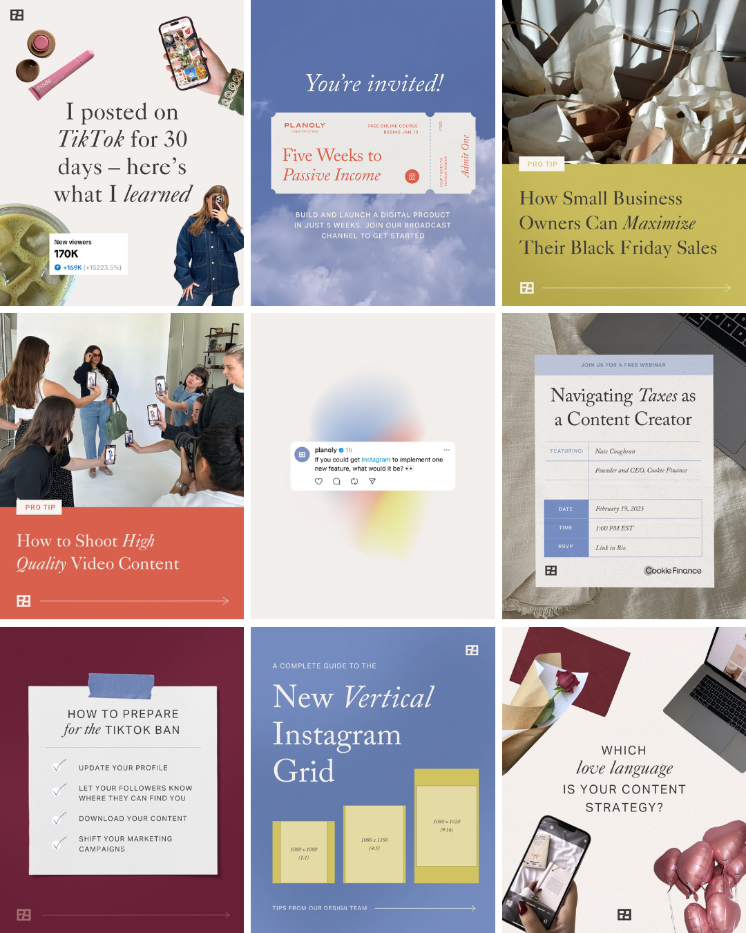 This content was created for Planoly’s 209k+ Instagram followers with a dual purpose: to boost engagement with save-worthy, trend forward graphics and solidify Planoly’s standing as an industry thought leader.